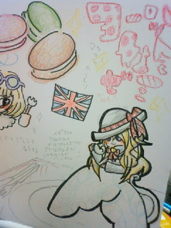せまっているえんとりーをかかねばー! って感じでしたが ゼミでなんかフリーペーパーつくるとかで うち完全に第3者なんですが 仲よしちゃんが 中心人物らしく ヨーロッパのゼミだから ヨーロッパっぽい 絵を描いてと頼まれて いそがしいから断りたかったんだけど みんな忙しいの一緒だし 何より今までゼミに貢献したこと一度もないので 絵は好きだしいいかあ と思って どんなの?と聞いたら テーマは 「ポップなニューヨークウォーカー」 お題が 「かわいい国旗」 「かわいいエッフェル塔」 「かわいいヨーロッパっぽい人とか物」 て言われたから 冗談で 「パステルカラーなエッフェル塔にプードルがしがみついてればいいかな?」 て聞いたらまた別の中心人物の子が 「うん!!!それいい!」て言われて ちょっと焦りました あたりまえだけど 難しいわ! 5時間くらい掛けてしまった・・・。 時間てば無情。 これが 「かわいい国旗」 「かわいいヨーロッパな人もの」 だね プードルなエッフェル塔は無理でした。 ちゃんちゃん >まき 50000HITを祝して