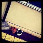 以前ここで話した ラム肉にされそうな おじいちゃん羊の話を 覚えてるかなー あれには続きがあるらしいです。 お話しよう 彼はマジックアワーの光を浴びて 水色とオレンジに体を染めたまま 柵の外を見にいこうと 柵を飛び越えて 走り出した後 ずっと走っていたんだよ ほとんど歩いていたのは 内緒の話で 途中の森では カラフルな風が 襲ってきたり 追いかけてきたファーマーに 人(羊)違いだと説明したり 今が待ってる大都会で 時計の針に刺されたり 折り紙で作った大きな鶴は 飛ぶのが苦手な上に背中が硬かったり お金がなくて体当たりで木から落としたリンゴを売ったり 知らないことには 楽しいこともいっぱいだけど なんだかだるいことも多いんだな どこまでいこうかそろそろ力もなくなってきた だって僕はおじいさんの羊 そんな時 街の中ですれ違った人の肩に 思い出を見つけたらしい あれはおばあちゃん羊の毛 僕がファーマーに連れられた後、君はそんなところにいたのかい 彼は ジャンプでマフラーを取り走り出しました かわりに人間にはリンゴを3つ置きました 今までで一番一生懸命はしりました。 悲しい思い出と優しい愛を見つけて 走り疲れた彼は木の下で しばらく休むことにしました。 首にマフラーをかけて 今日のマジックアワーはもう終わるからまた明日、二人で見よう おやすみモニカ >げ おはよーございまーーーす(^O^)/